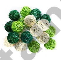 Тайская гирлянда из ротанга с шариками бело-зеленого цвета
